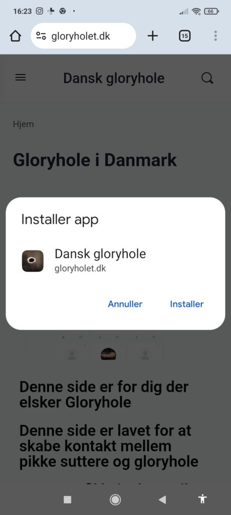 Kommer der ingen popup tryk på de 3 små prikker i højre øverste hjørne og føj til startskærm og ja til at installerer App